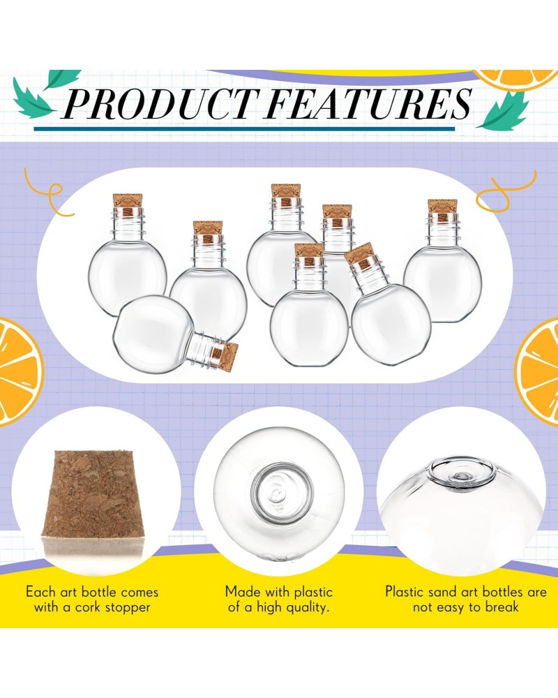 - Sturdy Material: clear plastic sand art bottles with cork are made of hard plastic, assuring long lasting durability and a high resistance to breakage, suitable a unique touch to your summer decorations